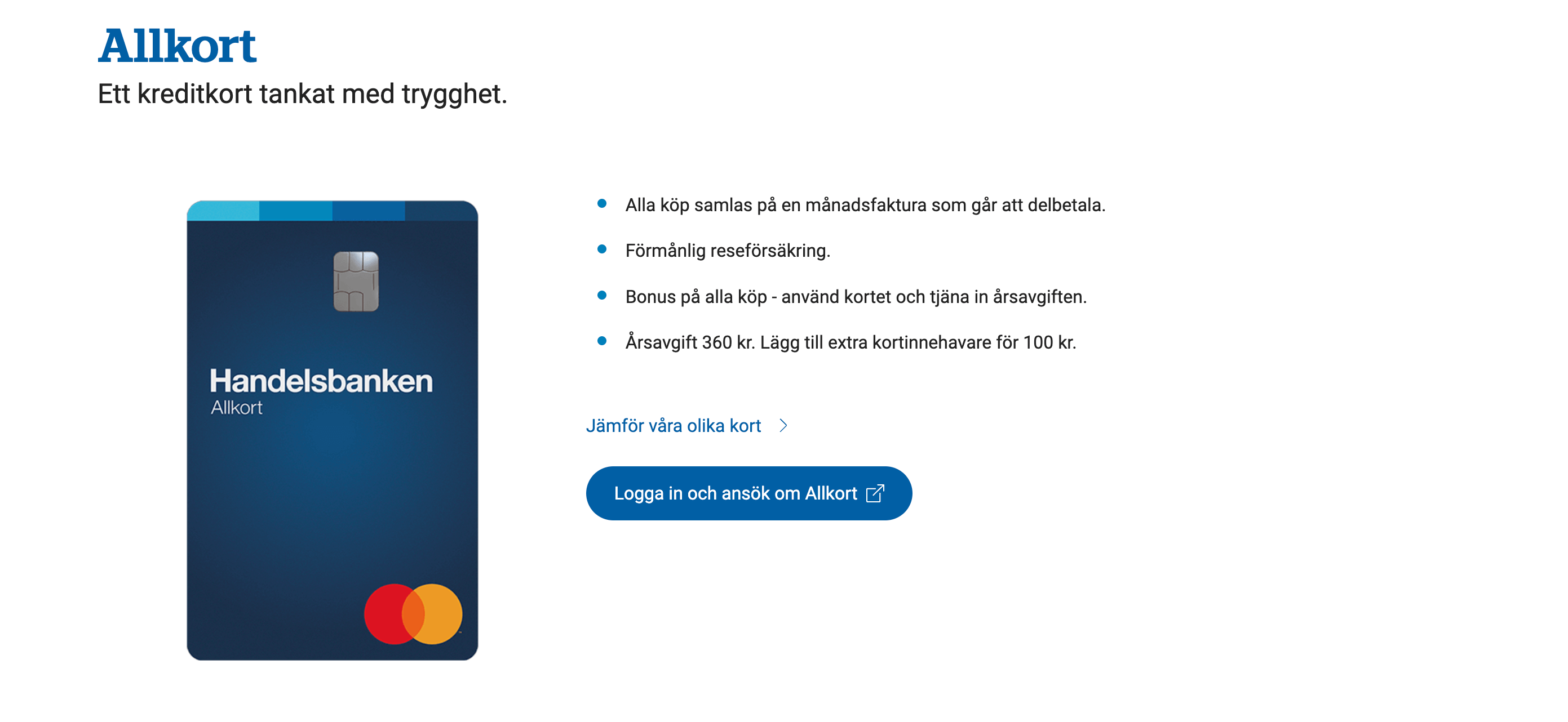 - Klicka dig vidare. Gå till Handelsbanken Allkorts ansökningsformulär.